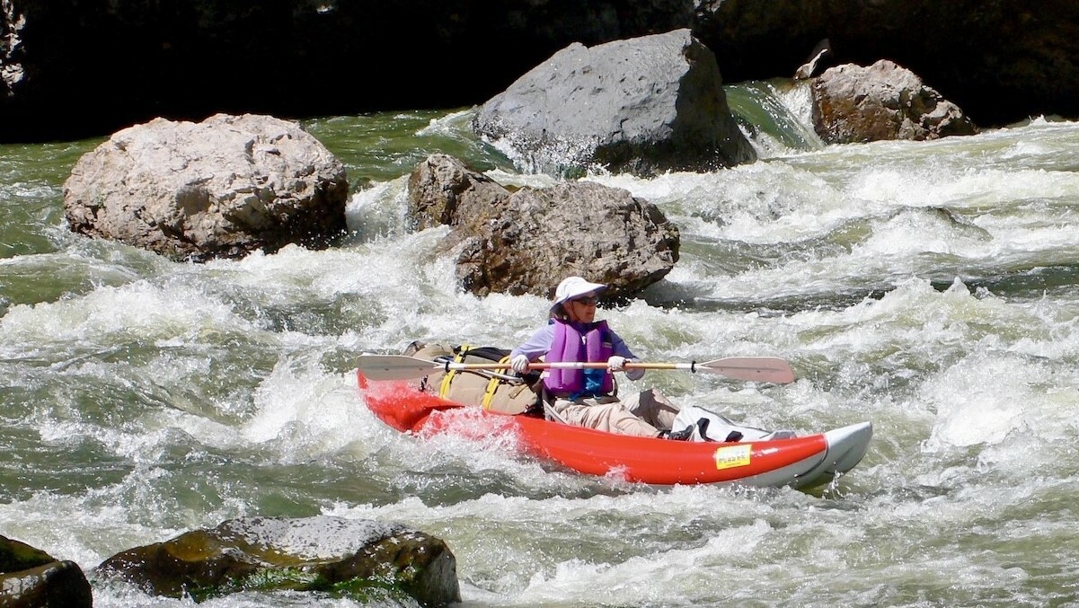 Bonnie Olin on Montgomery Rapid, Lower Owyhee in 2007 at ca. 490 cfs. Photo by Mike H. Quigley